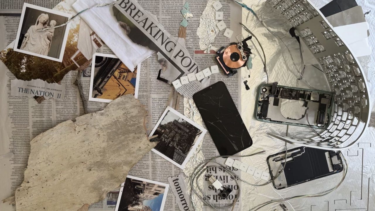 For the machine layer, we dismantled old phones and a keyboard. Wires, circuits, keys.